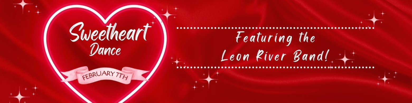 You are invited to an evening of love, laughter, and lively music at our Sweetheart Dance featuring our favorite group, The Leon River Band! Doors open at 6 pm with a potluck dinner. Bring a side dish or dessert; sausage wraps will be provided. Dance begins at 7 pm. and ends at 10 p.m. Tickets are $20 per person and will only be sold at the door. Children 10 and under free; babysitting is not provided. Come celebrate love and community with us!